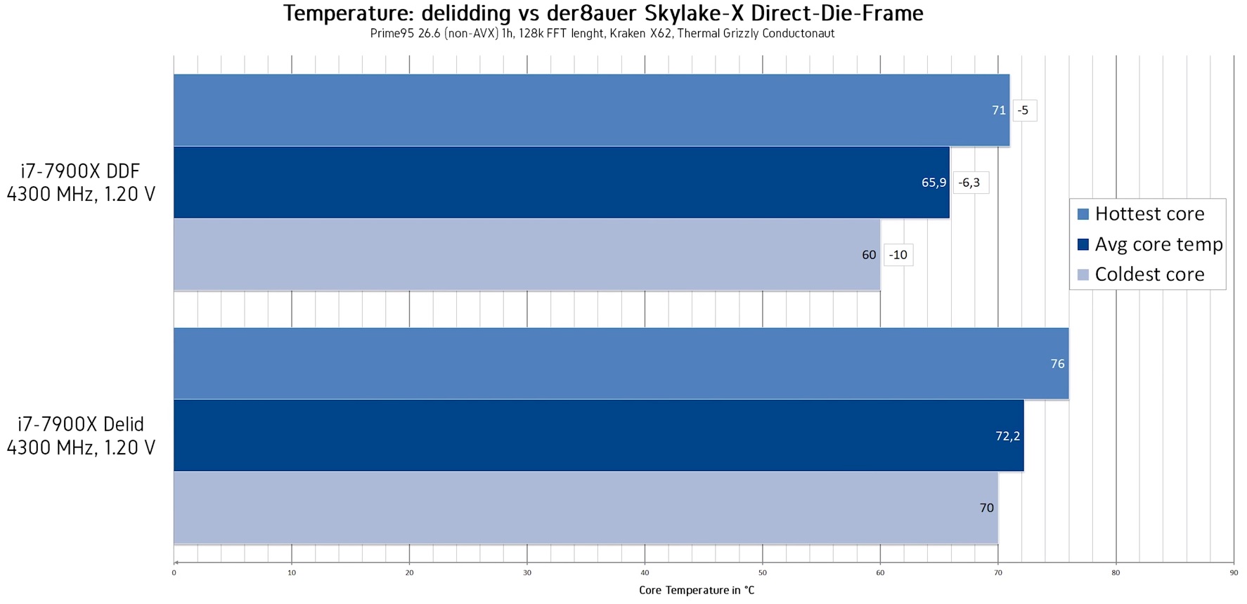 Немецкий оверклокер и инженер Роман «Der8auer» Хартунг решил пойти ещё дальше и предлагает охлаждать кристалл CPU напрямую, без использования теплораспределительной крышки. Специально для этих целей Роман разработал специальную металлическую рамку под названием Direct Die Frame, защищающую от скола массивный кристалл процессоров Skylake-X.