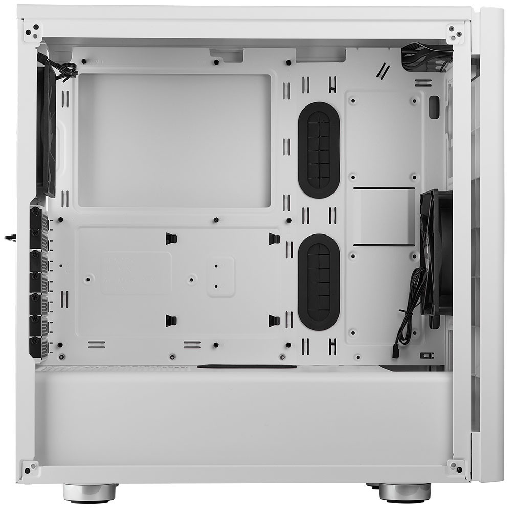 Кроме того, имеется возможность разместить один 360/280-мм радиатор СВО в передней части шасси, один 240-мм в верхней и ещё один 120-мм охладитель можно установить сзади. На панели ввода-вывода присутствуют порты USB 3.0 (x2) и два аудиоразъёма Mini-Jack. Максимальное число 120-мм вентиляторов равно шести, при этом в комплект поставки включены две «вертушки» Corsair SP120.
