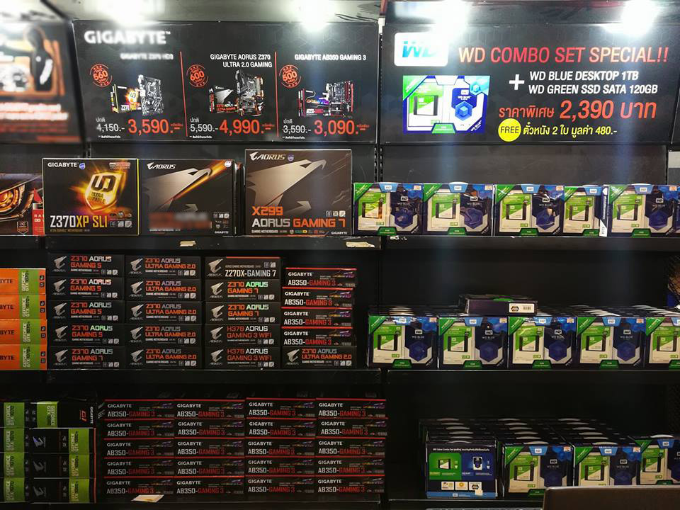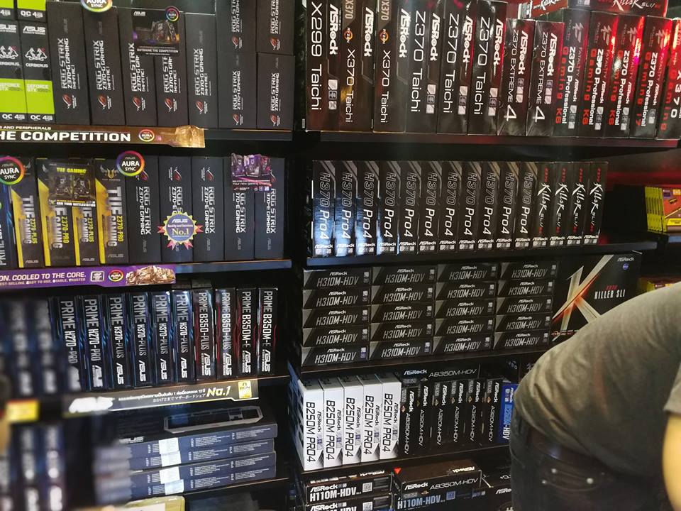 На приведённых фото запечатлены прилавки как с официально доступными в продаже, так и с ещё не вышедшими материнскими платами от трёх ведущих производителей. Нарушает ли данный магазин договор о неразглашении или же Intel установила особые сроки окончания NDA для таиландских ритейлеров пока неясно. Как бы там ни было, местные геймеры и энтузиасты уже могут приступить к сборке бюджетных систем с процессорами Coffee Lake-S, не разоряясь на плату с топовым чипсетом Intel Z370.