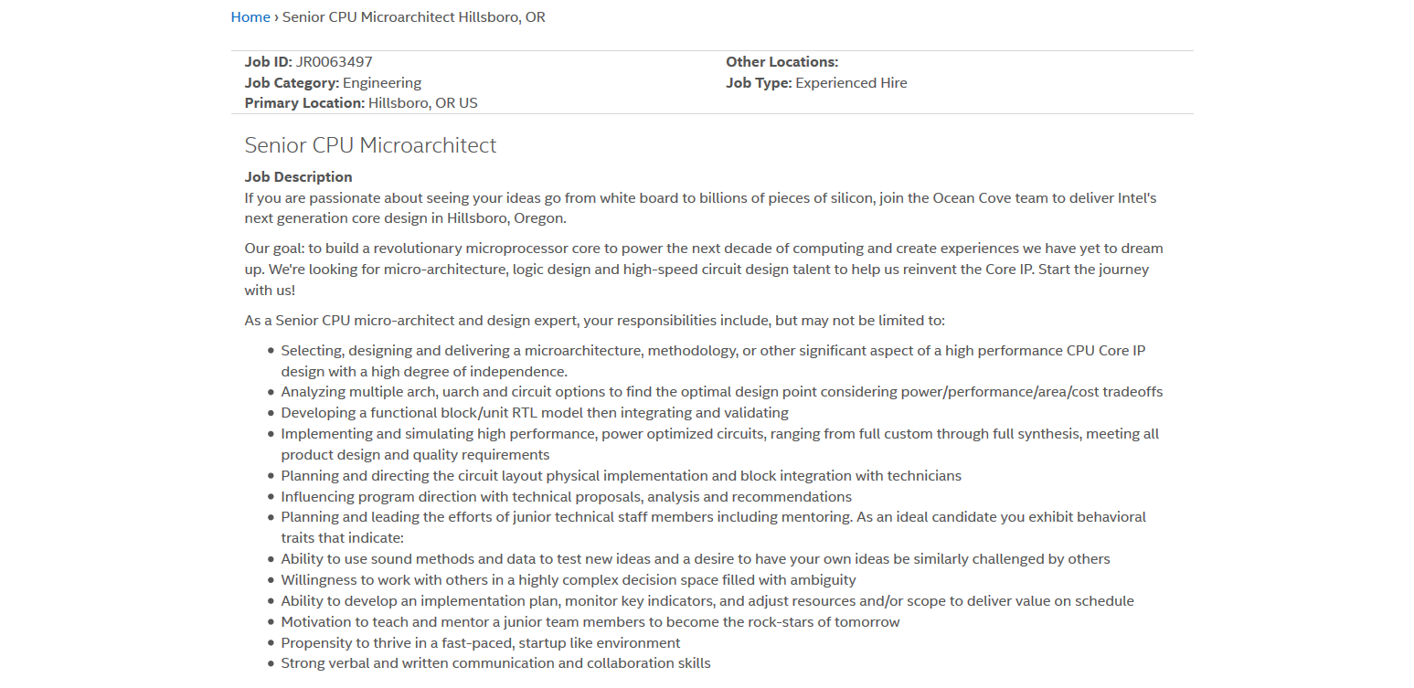 Не секрет, что уже долгое время корпорация Intel не вносила кардинальных изменений в свою микропроцессорную архитектуру, продолжая оптимизировать её ключевые элементы и совершенствовать технологические нормы. Тем не менее, судя по вакансии старшего разработчика процессорных микроархитектур (Senior CPU Microarchitect), размещённой на официальном сайте чипмейкера, в не столь отдалённом будущем в распоряжении Intel появится «революционное микропроцессорное ядро».