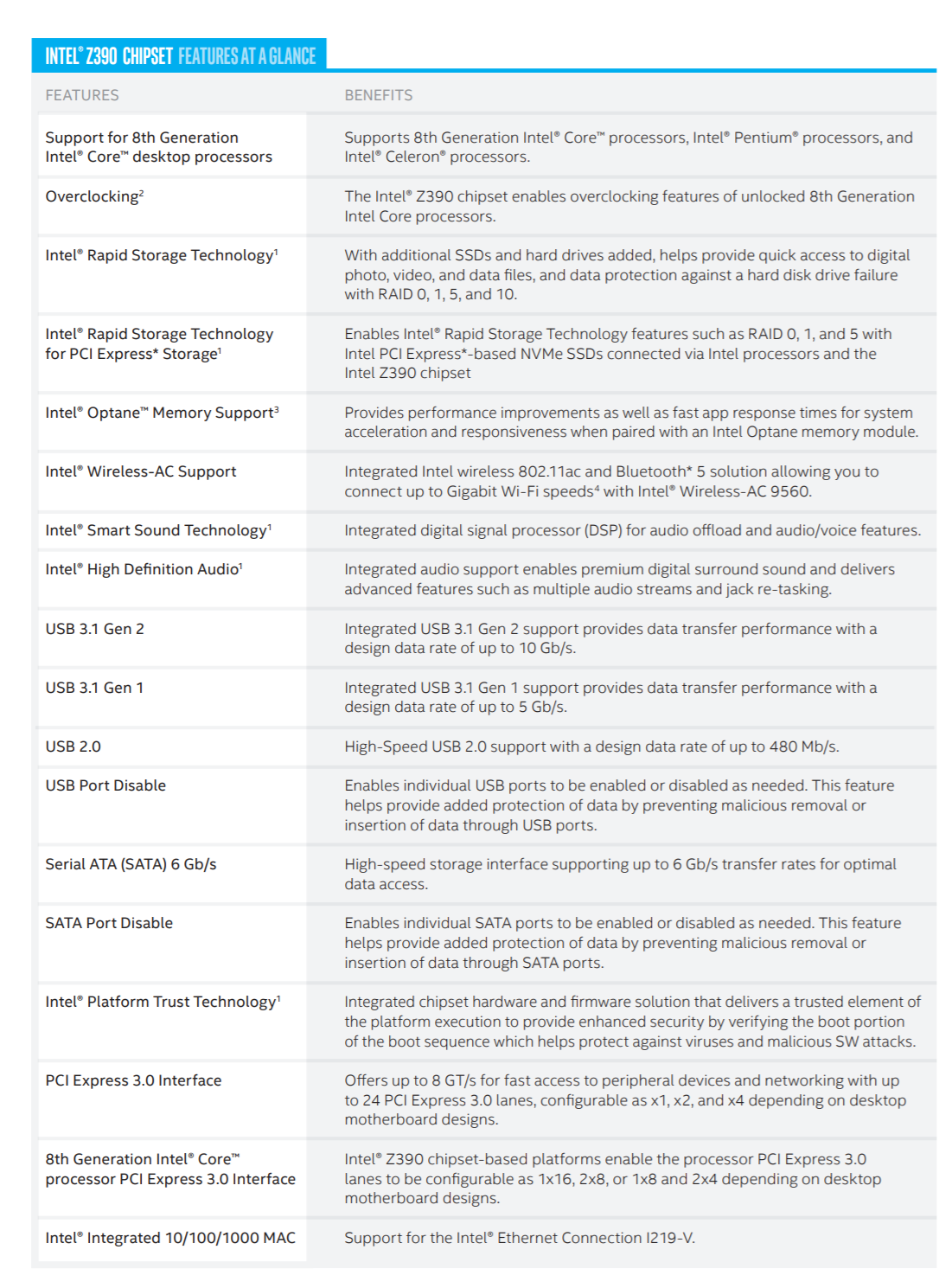 Корпорация Intel без особой огласки придала официальный статус набору системной логики Z390, первые сведения о котором появились в Сети ещё в середине прошлого года. Новый чипсет ляжет в основу материнских плат для платформы LGA1151, наделён поддержкой оверклокинга и совместим с процессорами Intel Core 8-го поколения (Coffee Lake-S).