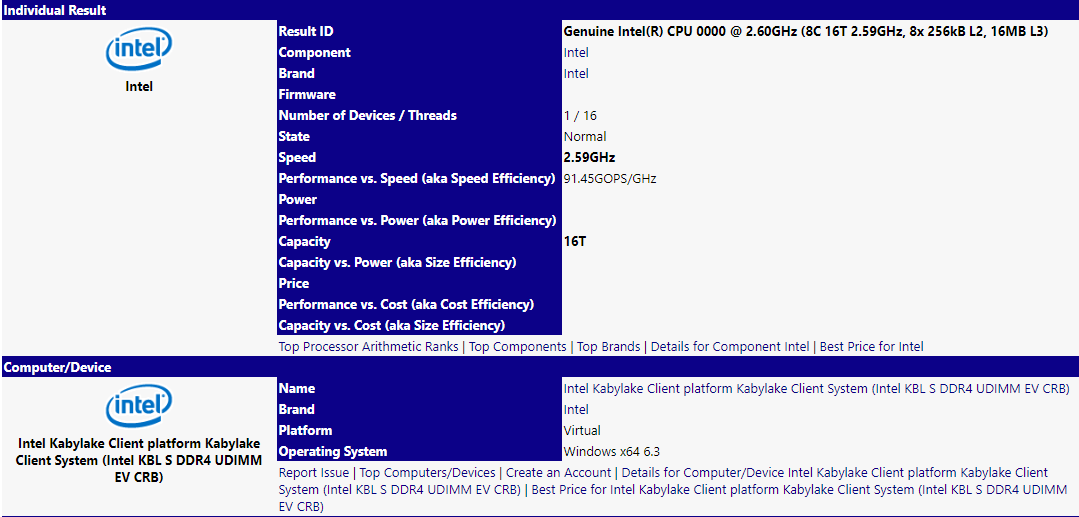 Что интересно, тестовая платформа была определена утилитой как Intel Kabylake Client platform. Здесь, вероятно, мы имеем дело с ошибкой утилиты, обусловленной малыми отличиями архитектур настольных платформы Kaby Lake-S и Coffee Lake-S. С другой стороны, это косвенно подтверждает, что готовящийся процессор получит конструктивное исполнение LGA1151.