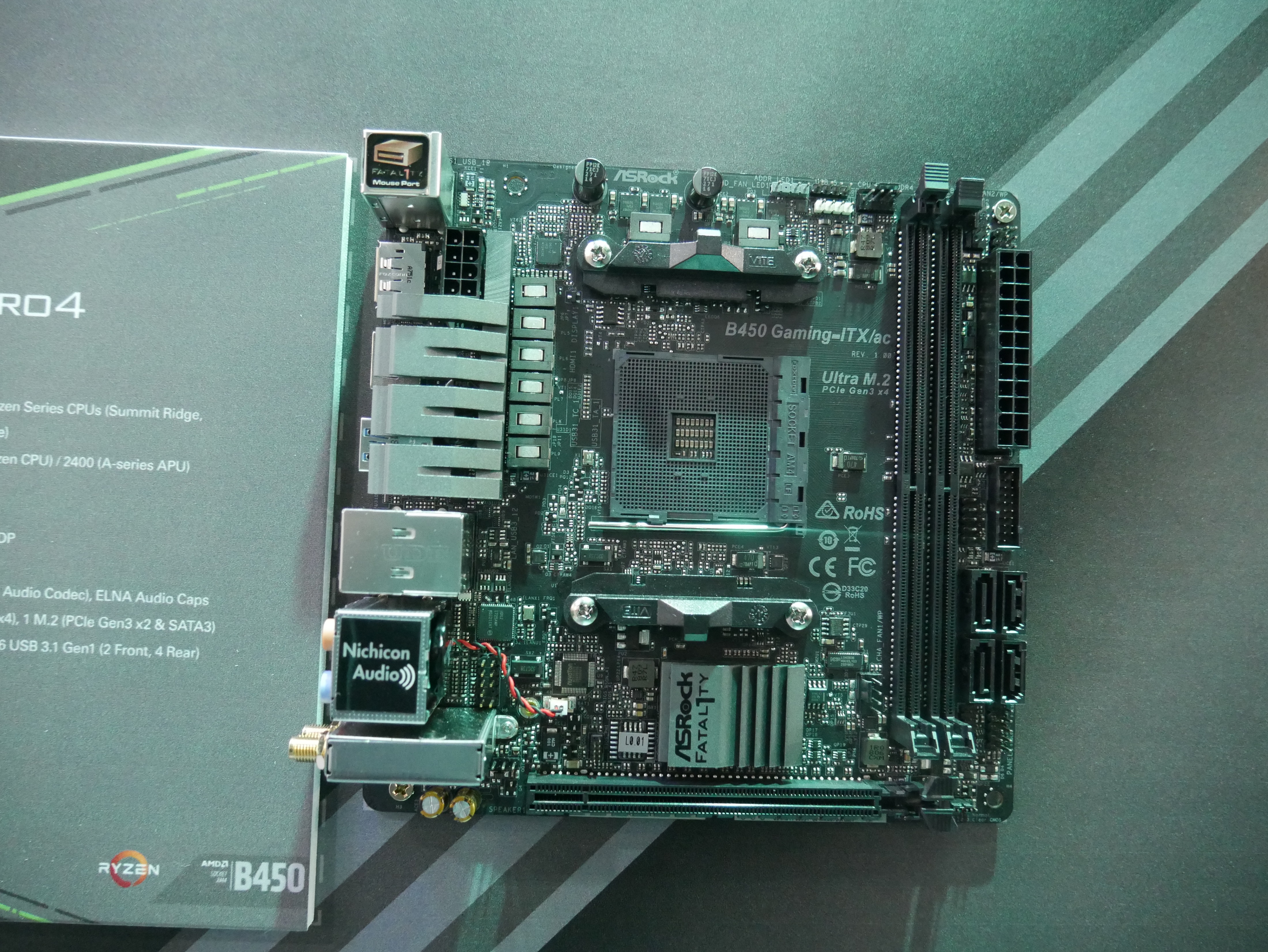 Любителей компактных систем должна заинтересовать Mini-ITX плата ASRock B450 Gaming-ITX/ac. В её распоряжении имеется 8-фазная система питания процессорного гнезда, два разъёма под оперативную память DDR4 и один слот PCI Express 3.0 x16. Для подключения накопителей можно использовать четыре порта SATA 6 Гбит/с и один разъём M.2. Среди прочего следует отметить беспроводной адаптер Wi-Fi 802.11ac и Bluetooth 4.2.