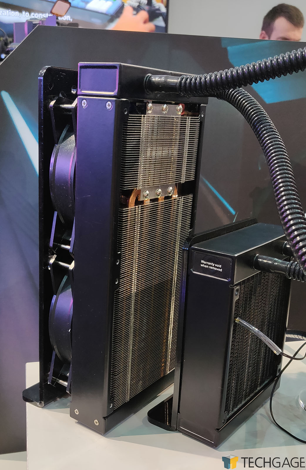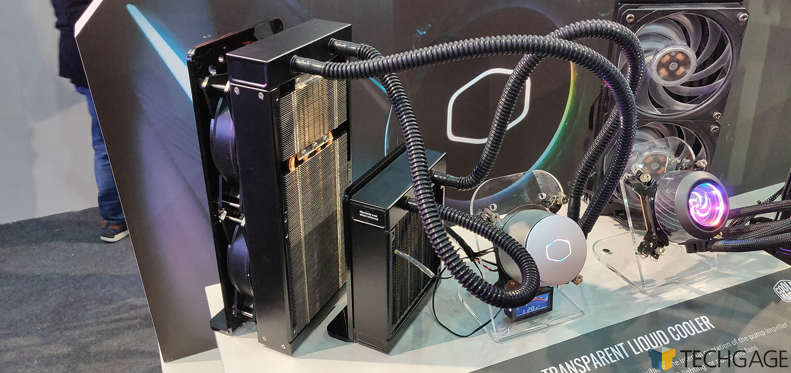 В состав Thermoelectric Liquid Cooler входит относительно крупный водоблок со встроенной помпой, набор шлангов и два радиатора. Первый используется для первичного охлаждения теплоносителя до комнатной температуры, тогда как второй, содержащий термоэлектрические преобразователи, позволяет снизить температуру жидкости до значений ниже уровня окружающей среды. По оценкам Cooler Master, такой подход позволяет выиграть 7-8°C по сравнению с традиционными СЖО.