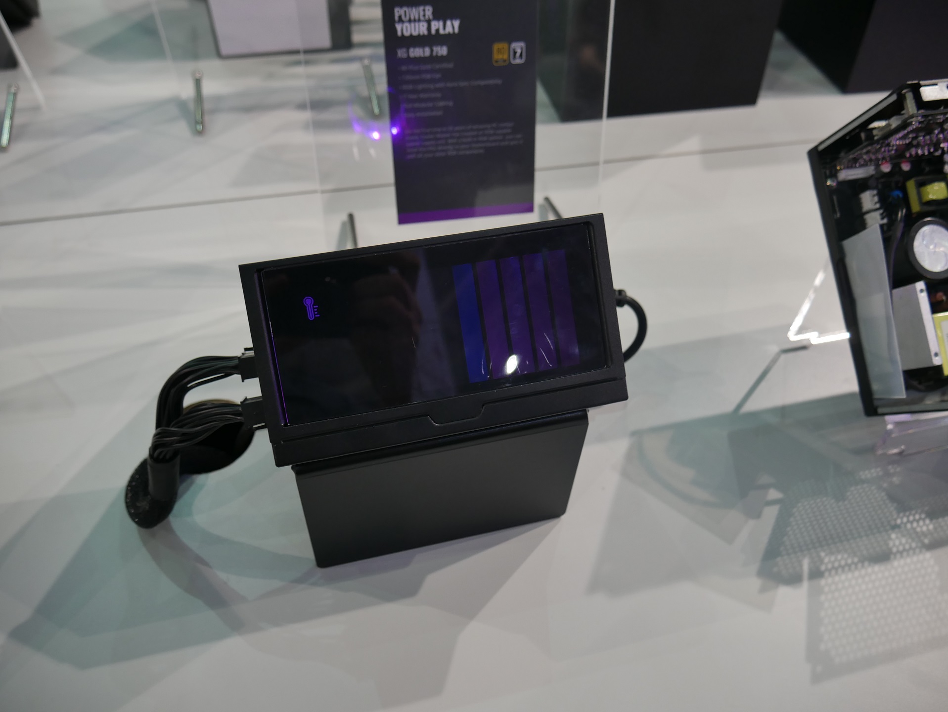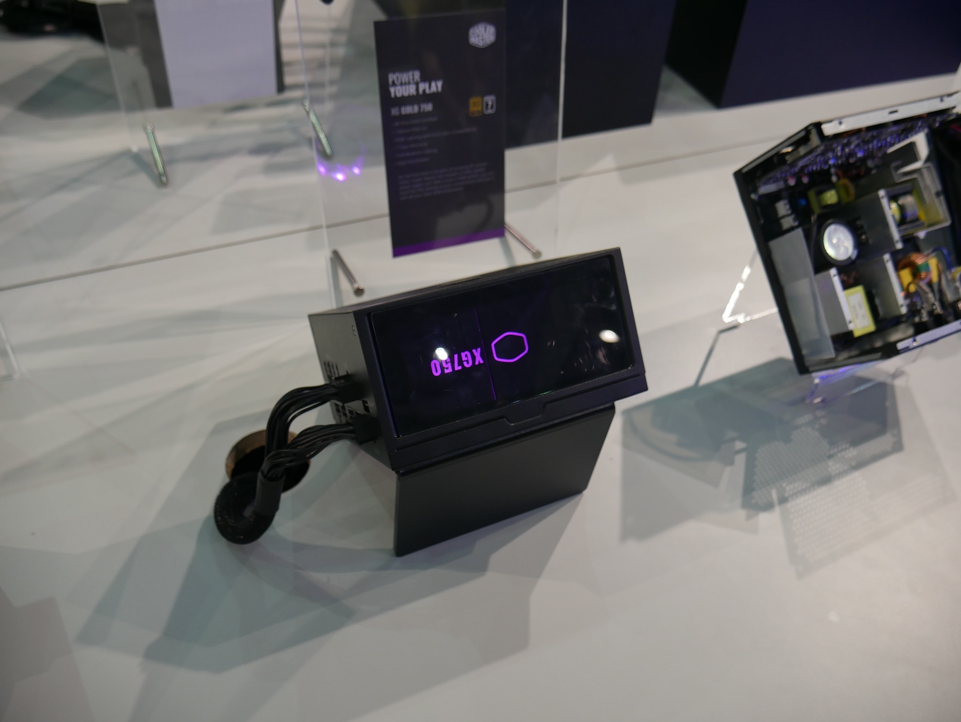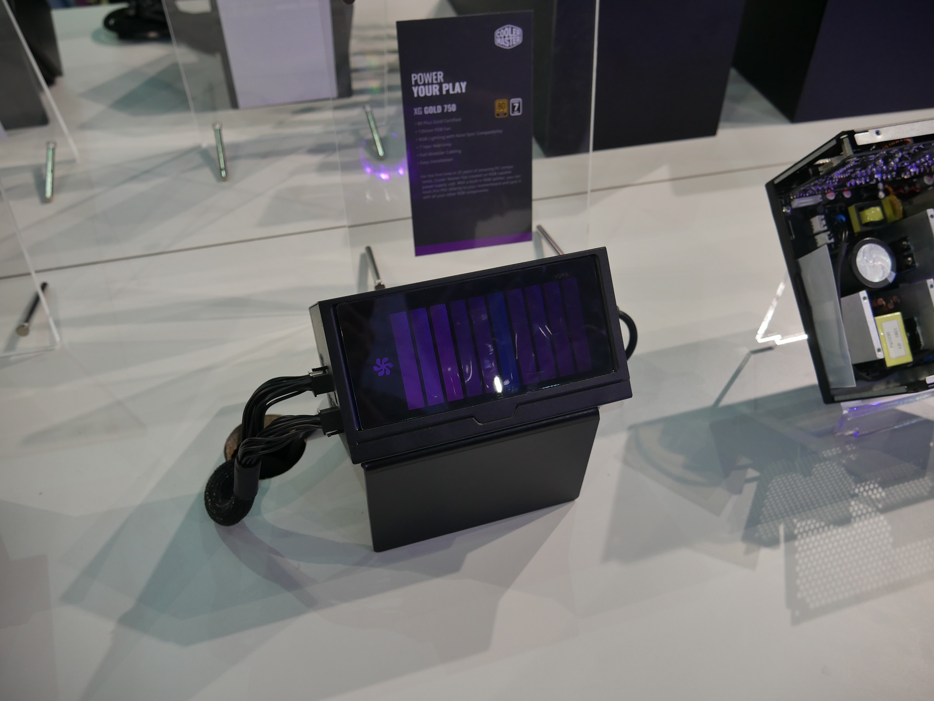 Кроме того, Cooler Master также показала блоки питания серии XG. Демонстрировавшаяся на стенде 750-ваттная модель XG750 помимо вентилятора с многоцветной подсветкой может похвастаться RGB-индикатором, занимающим почти всю поверхность одной из боковых стенок.