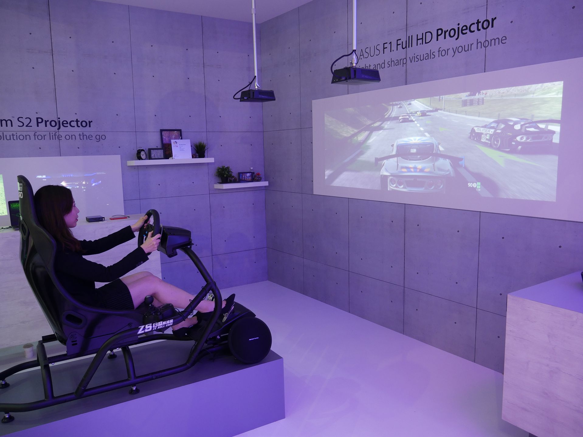 Посетители выставки также могли почувствовать себя профессиональным гонщиком, опробовав систему с игровым проектором от ASUSTeK Computer.