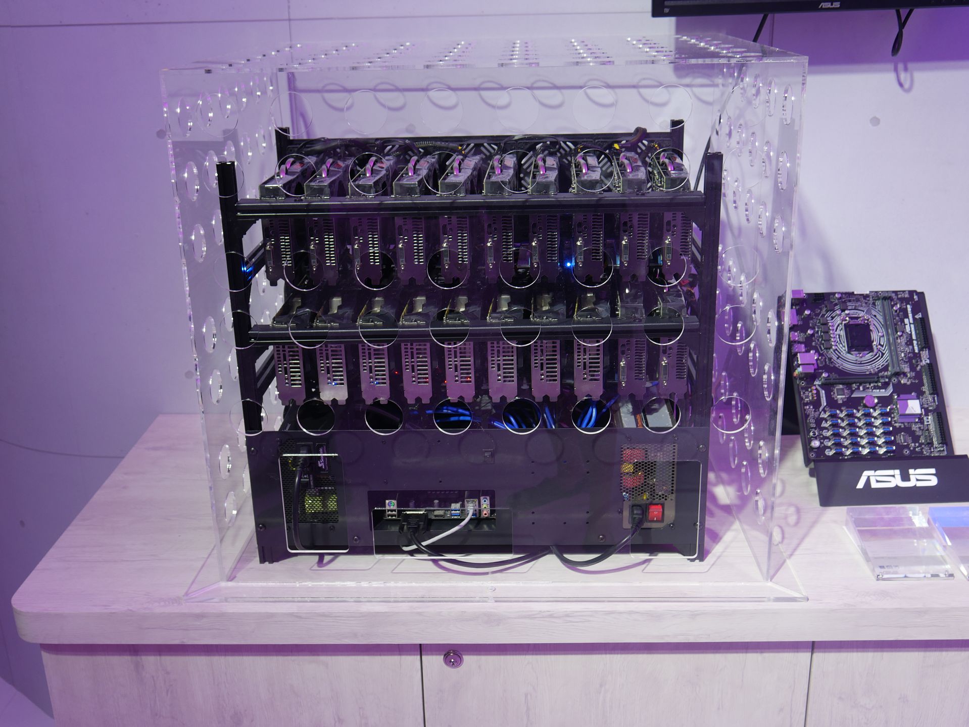 Демонстрирующаяся на Computex 2018 система на базе упомянутой выше платы обеспечивала работу сразу 20 видеокарт, построенных на основе GPU как от Nvidia, так и AMD.