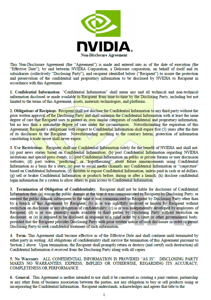 С полным текстом нового договора о неразглашении Nvidia можно ознакомиться ниже.