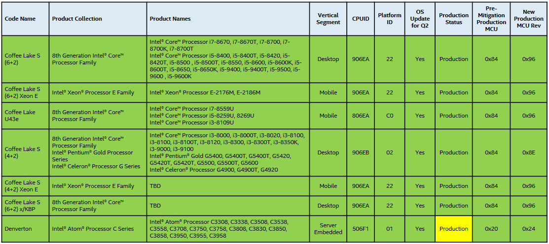 Согласно документу Intel, в обозримом будущем в продажу поступят четырёхъядерные процессоры Core i3-9000 и Core i3-9100, а также шестиядерные Core i5-9400, Core i5-9500, Core i5-9600 и Core i5-9600K. При этом ни одного CPU из линейки Core i7 в нём упомянуто не было.