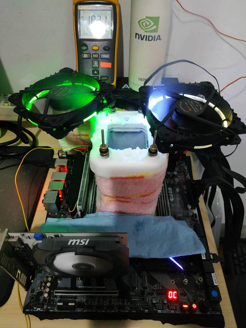 К сожалению, о прохождении бенчмарков в таком режиме речи идти не могло, стабильности системы хватило лишь на валидацию CPU-Z. Для экспериментов использовалась материнская плата MSI MEG X399 Creation, разработанная с мыслью об «аппетитах» чипов AMD Ryzen Threadripper второго поколения.
