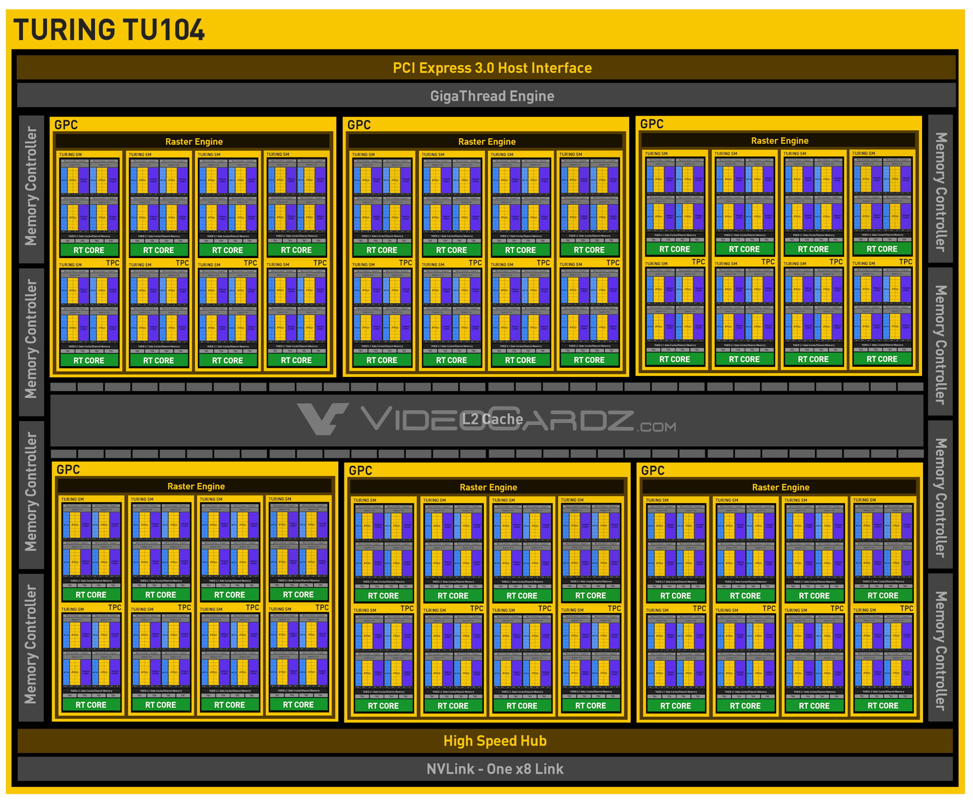 В основе ускорителя Nvidia Tesla T4 лежит урезанный вариант графического процессора TU104, также использующегося в видеокарте GeForce RTX 2080. В распоряжении данного GPU имеются 2560 ядер CUDA и 320 ядер Tensor. Ускоритель оборудован 16 гигабайтами памяти GDDR6 с 256-разрядной шиной, обеспечивающей пропускную способность около 320 Гбайт/с. Уровень «сырой» вычислительной мощности при операциях одинарной точности (FP32) составляет 8,1 Тфлопс.