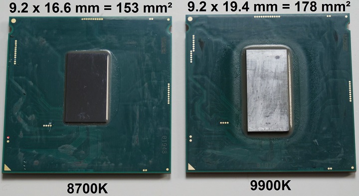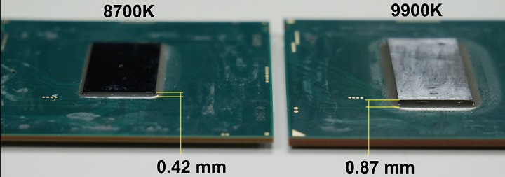 Таким образом, «горячий нрав» процессоров Coffee Lake-S Refresh объясняется не только выросшим числом ядер, но и увеличенной толщиной кремниевого кристалла, не обладающего высокой теплопроводностью. Что именно подтолкнуло Intel расщедриться на кремний, увеличив толщину чипов более чем в два раза, пока точно неизвестно.