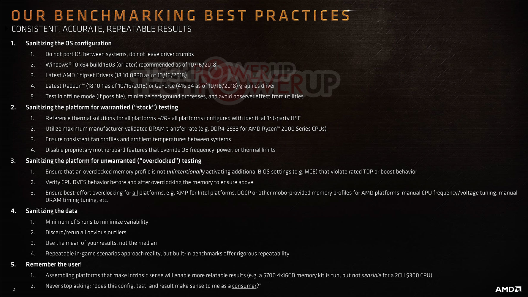 AMD приготовила длинный список замечаний по итогам обоих этапов игровых бенчмарков и дала не менее обширный перечень рекомендаций и «лучших практик» для получения «последовательных, точных, повторяемых» результатов во время тестирования процессоров Ryzen.