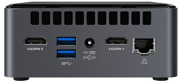 В состав новых Intel NUC входит терабайтный жёсткий диск, беспроводной адаптер Wi-Fi 802.11ac и Bluetooth 5, а среди разъёмов на гранях можно отметить пару HDMI 2.0a, разъём гигабитного сетевого интерфейса RJ-45 и четыре порта USB 3.0. Кроме того, устройства допускают установку NVMe-накопителя в формате M.2. Габариты новинок составляют 117 x 112 x 52 мм, а для их питания используется внешний адаптер мощностью 90 Вт.