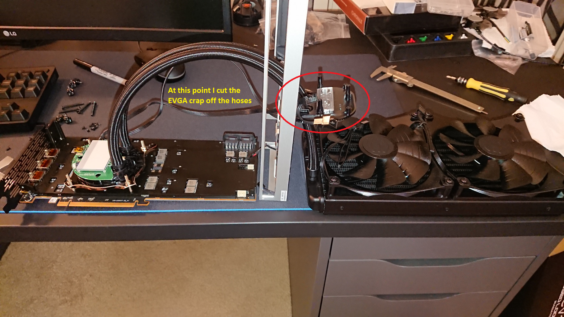 В качестве основы нового охладителя для AMD Radeon VII выступила процессорная СЖО EVGA CLC 280, оборудованная 280-мм алюминиевым радиатором. Чтобы установить её на графический чип AMD Vega 20 энтузиасту пришлось не только модифицировать кожух видеокарты, но и убрать «лишние» компоненты водоблока.