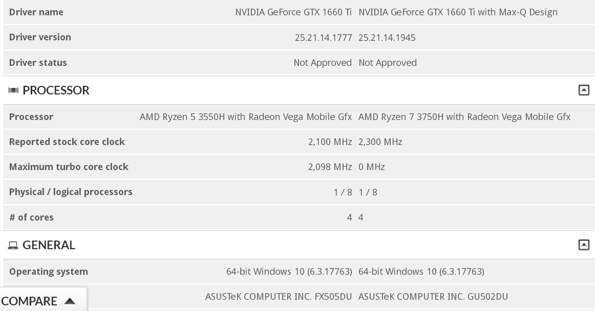 Модель ASUS FX505DU, принадлежащая к «семейству» TUF Gaming, получит гибридный чип AMD Ryzen 5 3550H (4 ядра/8 потоков, 2,1/3,7 ГГц, Radeon Vega 8) и графический ускоритель Nvidia GeForce GTX 1660 Ti. Лэптопы GU502DU и GU502DV будут оснащаться топовым процессором Ryzen 7 3750H (4 ядра/8 потоков, 2,3/4 ГГц, Radeon Vega 10) и видеокартой GeForce GTX 1660 Ti Max-Q или GeForce RTX 2060 Max-Q соответственно.