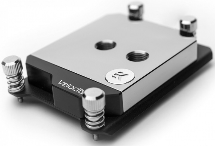 Контактная пластина водоблоков EK-Velocity sTR4 изготавливается из меди, полностью охватывает теплораспределительную крышку чипов Ryzen Threadripper, а на её внутренней стороне имеется массив микроканалов, обеспечивающих эффективную теплопередачу. Для защиты от коррозии она покрыта тонким слоем никеля.