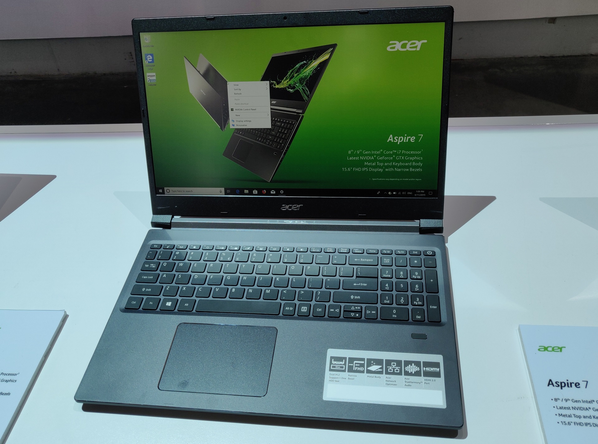 Что касается Acer Aspire 7, то он, вполне предсказуемо, является наиболее производительным решением линейки. В роли «сердца» устройства выступает процессор Intel Core 8-го или 9-го поколения (архитектура Coffee Lake), а за обработку графики отвечает «новейшая видеокарта Nvidia GeForce GTX». Вероятно, имеется в виду ещё не представленная GeForce GTX 1650.