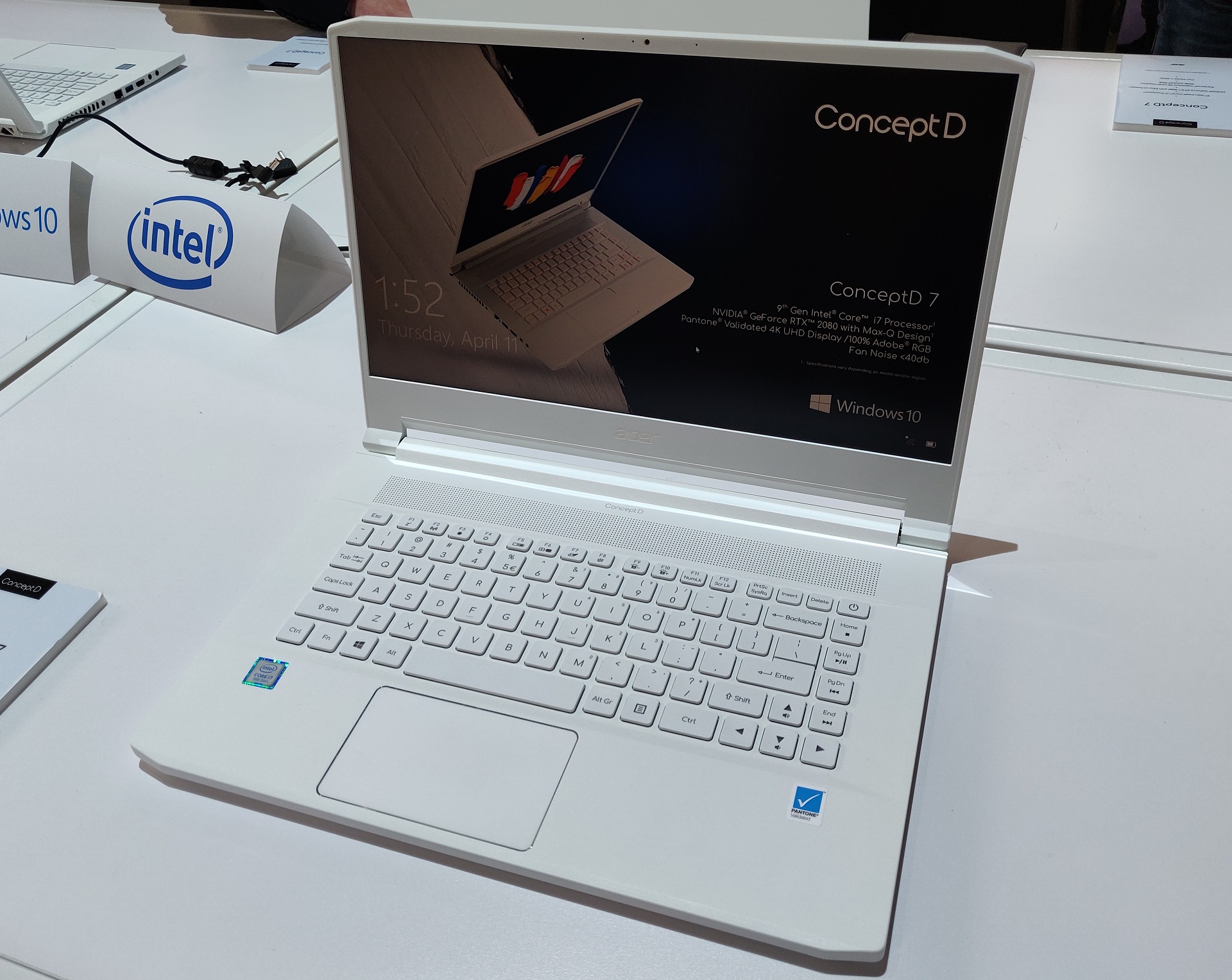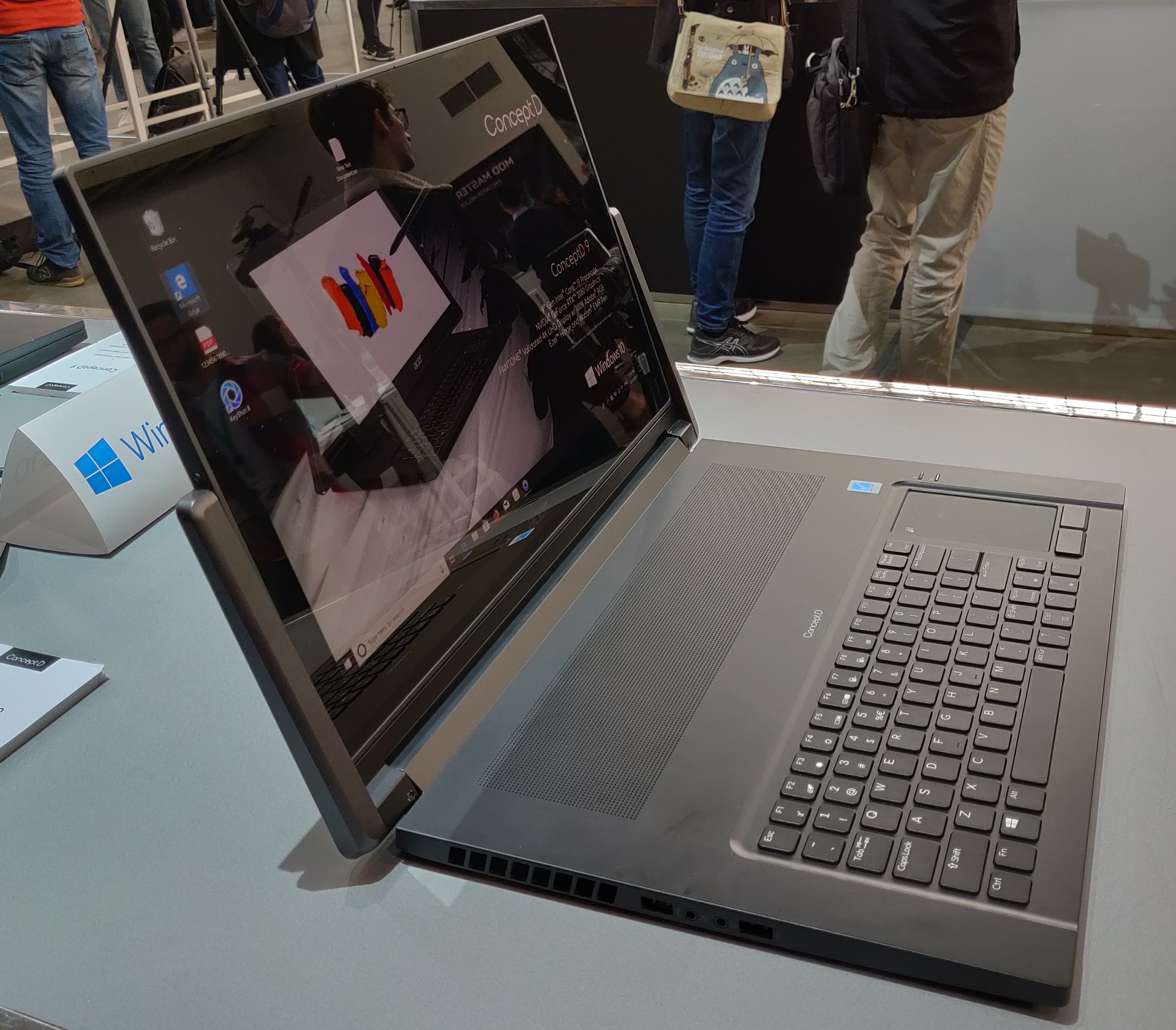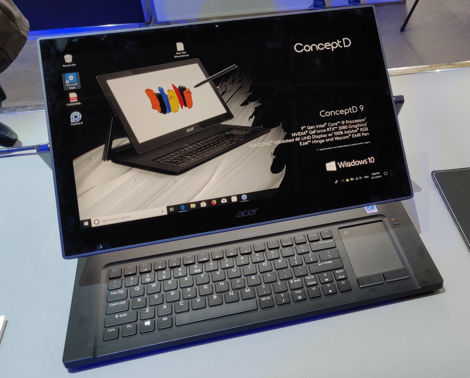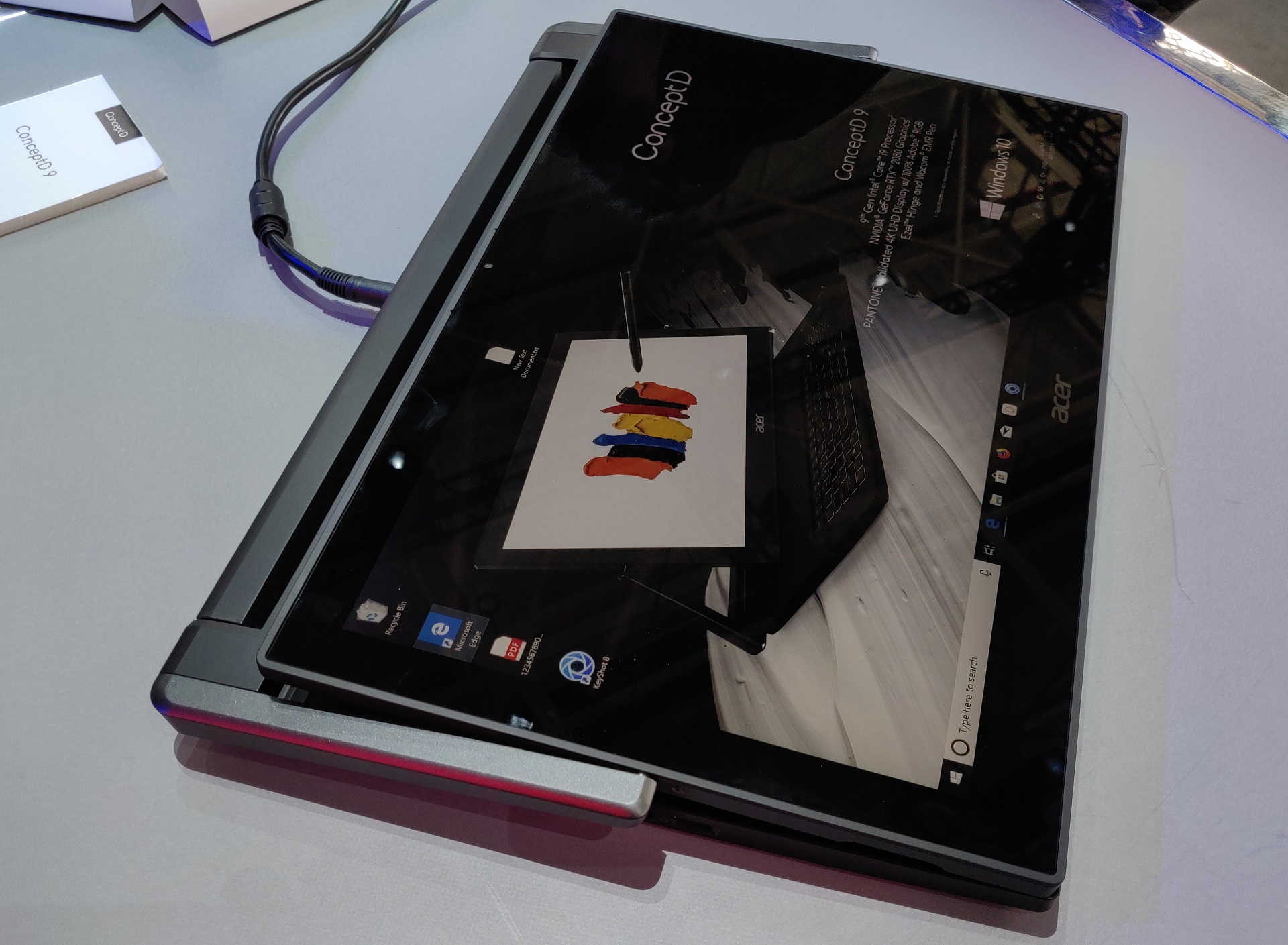 Одним из наиболее интересных решений нового бренда стал лэптоп ConceptD 9. Он оборудован 17,3-дюймовым сенсорным 4K-дисплеем на шарнире Ezel Aero Hinge, благодаря которому экран можно зафиксировать в различных положениях. Заявляется о 100-процентном охвате палитры Adobe RGB и значении Delta E <1. Кроме того, имеется поддержка стилуса Wacom EMR.
