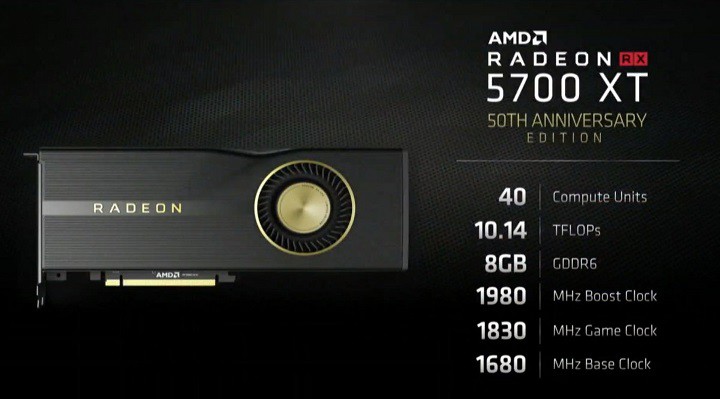 Кроме того, чипмейкер также подготовил модель Radeon RX 5700 XT 50th Anniversary Edition, приуроченную к 50-летию компании. Она может похвастаться увеличенной до 1980 МГц частотой boost-режима и будет продаваться через официальный сайт AMD по цене в 499 долларов.