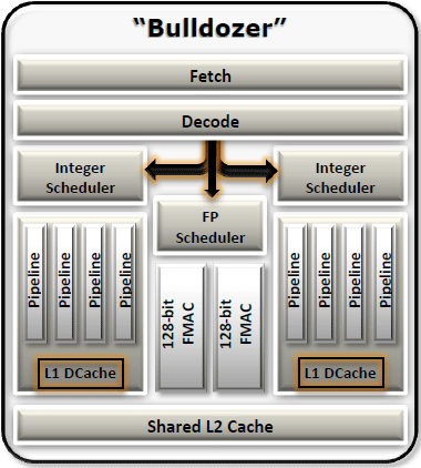 Вычислительный модуль Bulldozer: два ALU, один FPU