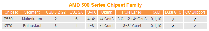 Тем временем китайские энтузиасты из сообщества HKEPC обнародовали таблицу с краткими характеристиками набора логики AMD B550. По сравнению с топовым X570 он предлагает меньше портов USB 3.2 Gen2 (10 Гбит/с), не поддерживает PCI Express 4.0, и сообщается с процессором Ryzen посредством четырёх линий PCI-E 3.0 (вместо PCI-E 4.0), что ограничивает суммарную пропускную способность встроенных в него контроллеров.