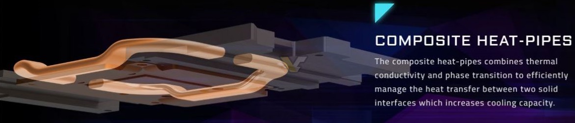 Водоблок имеет медное основание, контактирующее с графическим ядром Nvidia TU102, а отвод тепла от микросхем памяти GDDR6 и системы питания обеспечивает металлическая пластина с парой медных теплотрубок.
