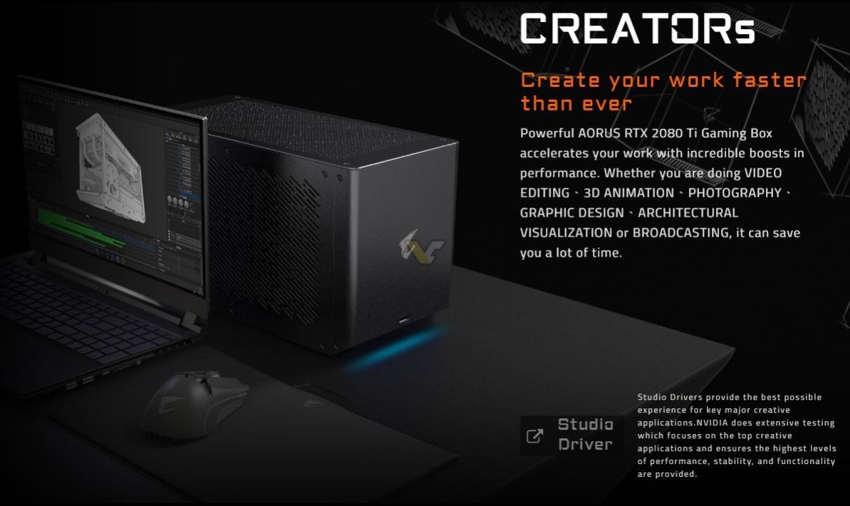 Согласно задумке Gigabyte, новинка будет интересна не только геймерам с тугим кошельком, но и профессионалам, нуждающимся в мощном 3D-ускорителе. Напомним, что с недавних пор для потребительских карт Nvidia GeForce доступен Studio Driver, оптимизированный для приложений по работе с графикой или видеоконтентом.