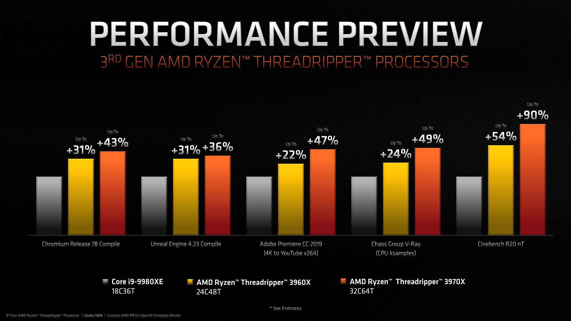 Сегодня компания AMD официально представила третье поколения процессоров Ryzen Threadripper, ставшее частью HEDT-платформы Socket sTRX4. Изначально новое семейство будет включать два CPU: Ryzen Threadripper 3960X и 3970X. Первый располагает 24 ядрами Zen 2 и является самым младшим решением линейки, а второй оперирует 32 ядрами.