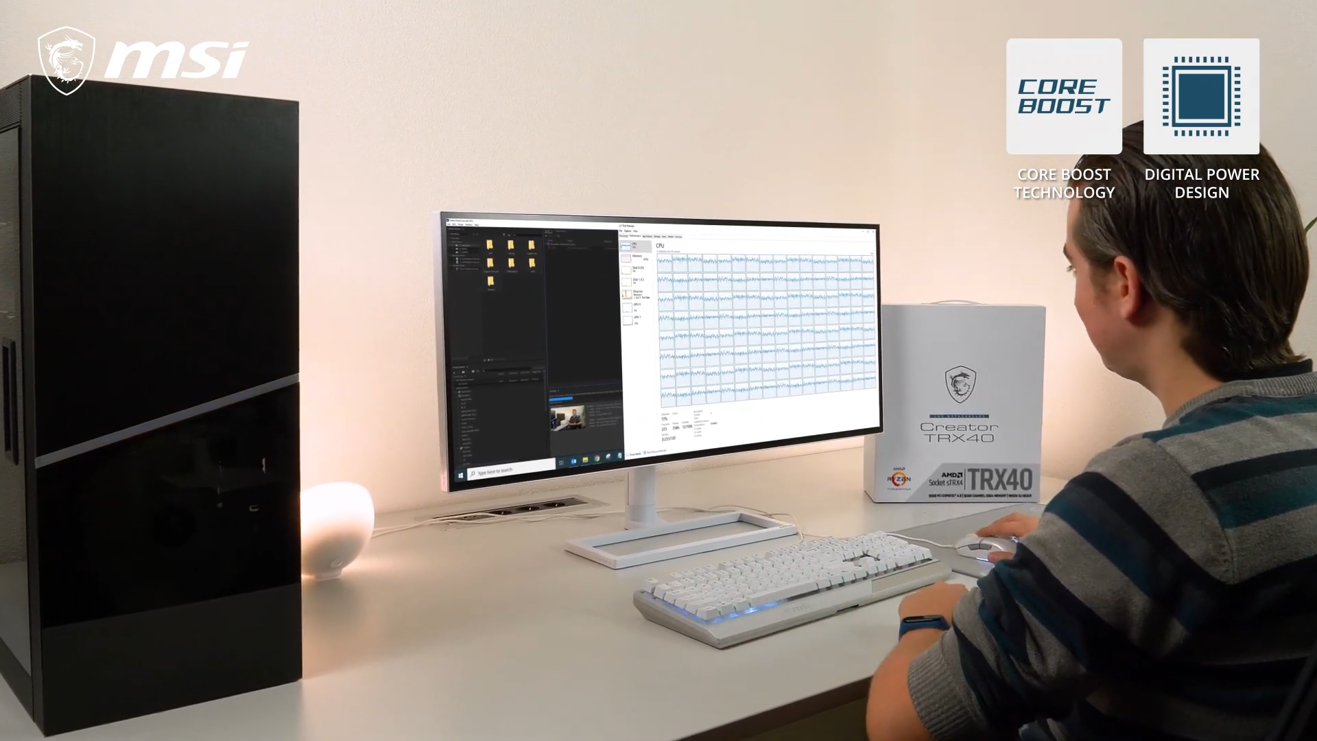 Одной из первых в эту игру вступила компания Micro-Star International. В ролике, посвящённом системной плате Creator TRX40, она показала окно Диспетчера задач со 128 процессорными потоками. На сегодня 64 ядра/128 потоков имеется только у серверных AMD EPYC, являющихся прообразом HEDT-процессоров Ryzen Threadripper.
