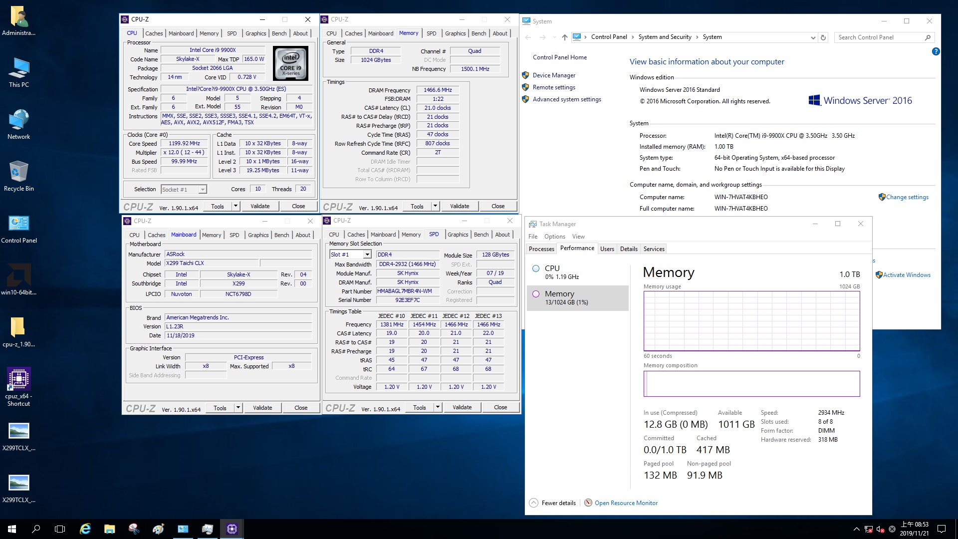 Несколько дней назад «придворный» оверклокер ASRock Ник Ши (Nick Shih) похвастался работой одного терабайта оперативной памяти на материнской плате ASRock X299 Taichi CLX. Энтузиаст использовал восемь модулей формата LRDIMM ёмкостью 128 ГБ каждый, хотя платы на чипсете Intel X299, согласно спецификации, поддерживают максимум 256 ГБ памяти.