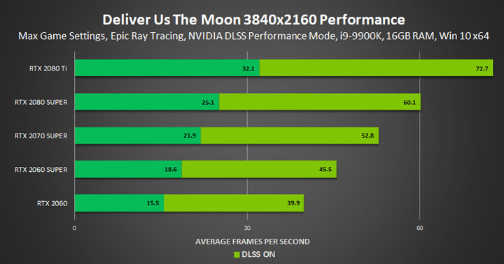 Технология DLSS в Deliver Us The Moon имеет три предустановленных настройки: качество, баланс и производительность. По мнению Nvidia, DLSS обеспечивает сопоставимое качество со сглаживанием TAA при намного лучшем быстродействии.