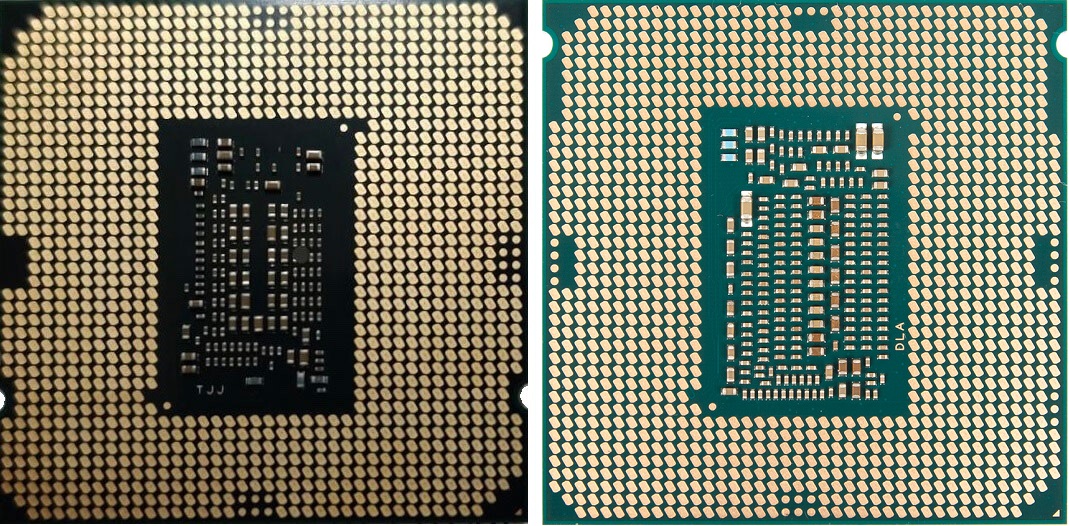 Неизвестный процессор Intel LGA1200 (слева) и Core i7-9700K