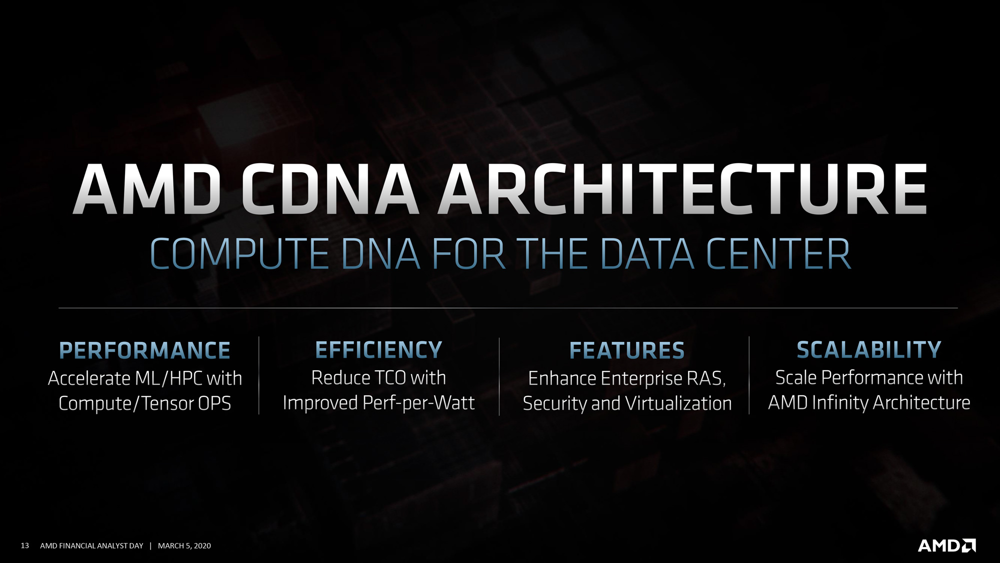 Разумеется, что и другие компании желают «откусить» часть быстроразвивающегося рынка, в том числе Adnvaced Micro Devices. Ранее она сумела заключить два контракта на поставку CPU и GPU для суперкомпьютеров с вычислительной мощностью более 1 Эфлопс. В новых ускорителях Radeon Instinct компания планирует использовать оптимизированную архитектуру Compute DNA (CDNA), формальный анонс которой состоялся в рамках Financial Analyst Day.