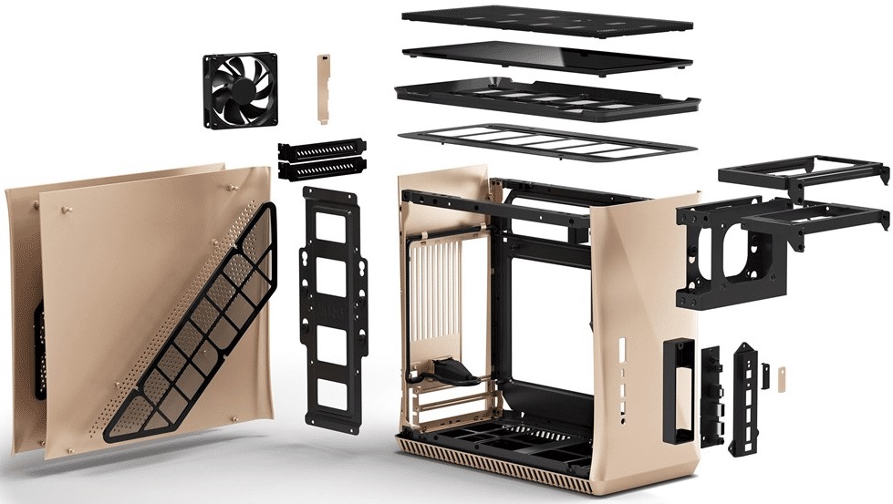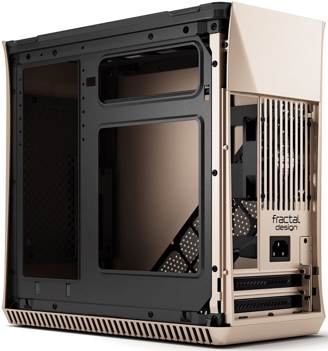 Стенки Fractal Design ERA ITX изготовлены из алюминия. Верхнюю панель из закалённого стекла/мелкоячеистой сетки можно будет заменить на деревянную, которая предложена в качестве аксессуара. Внутри корпуса найдётся место для пары 3,5- или четырёх 2,5-дюймовых накопителей, графической карты длиной до 295 мм, источника питания формата ATX, SFX-L или SFX и процессорного кулера высотой до 120 мм.