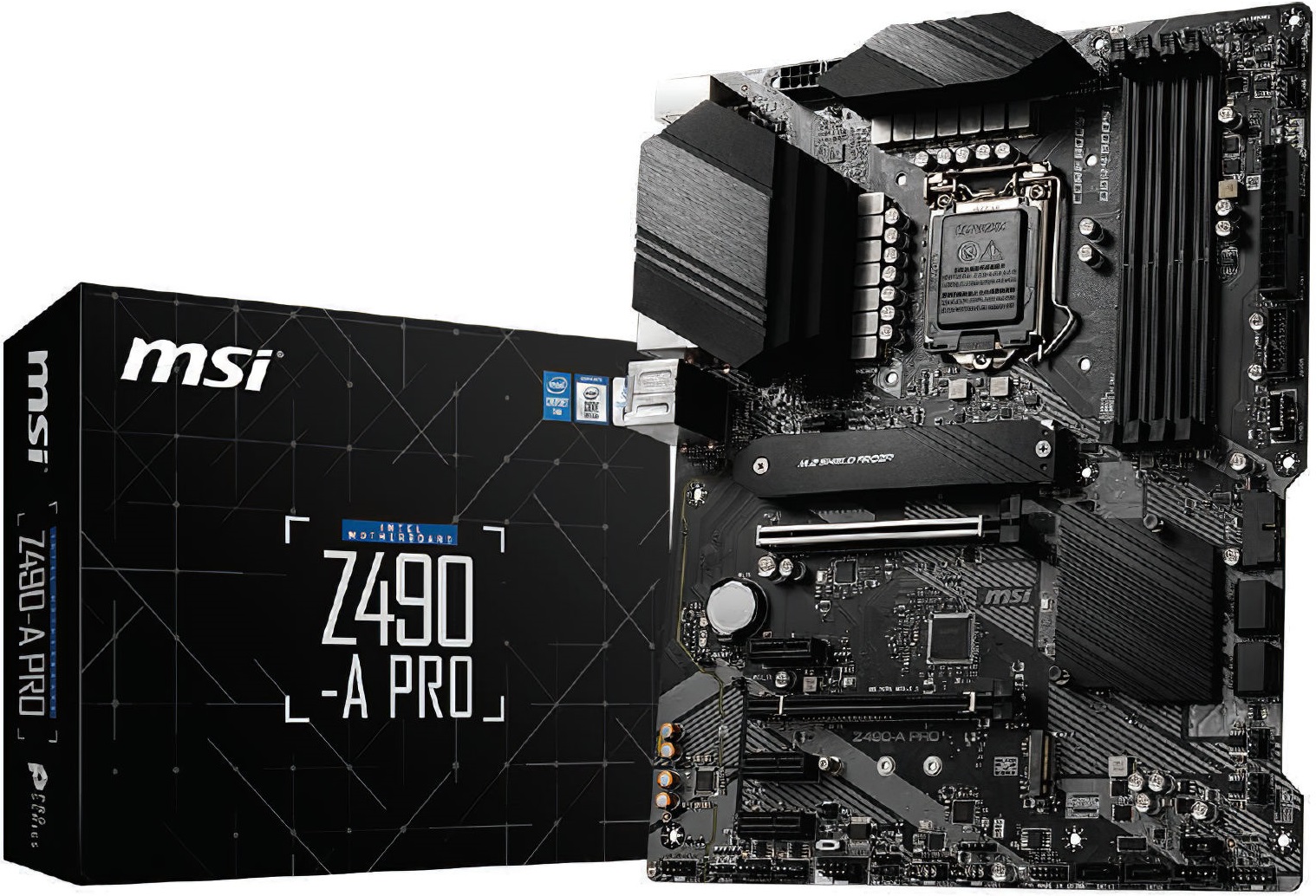Наконец, MSI Z490-A Pro представляет собой наиболее доступное решение LGA1200/Z490 в ассортименте тайваньского вендора. Её оснащение включает 14-фазную систему питания CPU, пару слотов PCI-E 3.0 x16 и три PCI-E 3.0 x1, два разъёма M.2 (один с радиатором) и четыре порта SATA 6 Гбит/с.