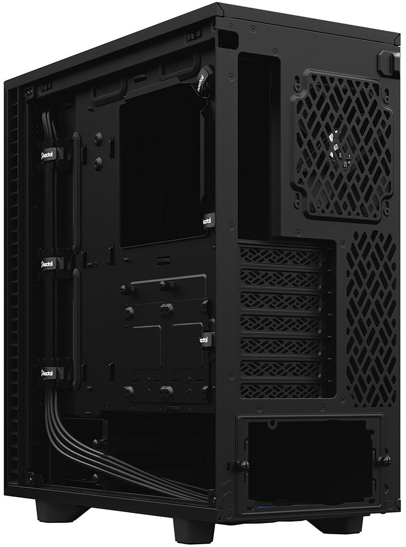 Габариты Fractal Design Define 7 Compact равны 427(Д) x 210(Ш) x 474(В) мм при массе около 8,8 кг. Внутри есть место для семи карт расширения длиной до 360 мм, процессорного кулера высотой 169 мм, ATX-совместимого источника питания, двух 3,5- и пары 2,5-дюймовых накопителей. За поддоном материнской платы имеется клиренс 17-28 мм для прокладки кабелей.