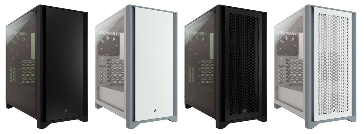 Corsair 4000D будет поставляться в черном и белом цвете, а также иметь два варианта передней панели: сплошную с боковым забором воздуха и сетку с крупными ячейками для любителей лучшего продува. Почти всю площадь верхней части занимает вентиляционное отверстие с фильтром.