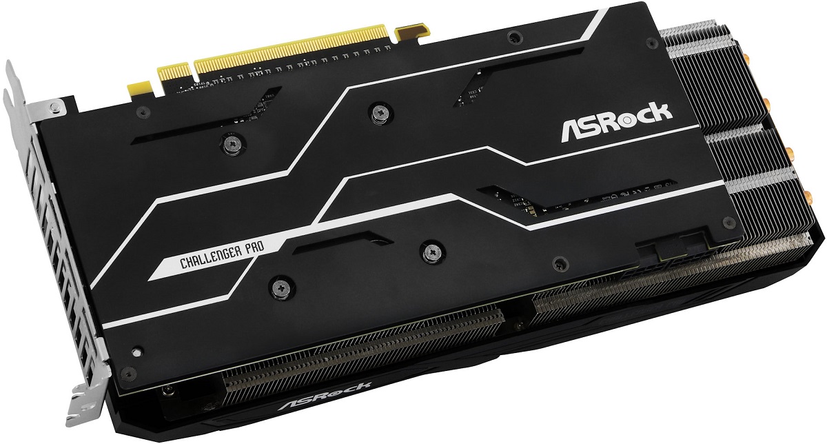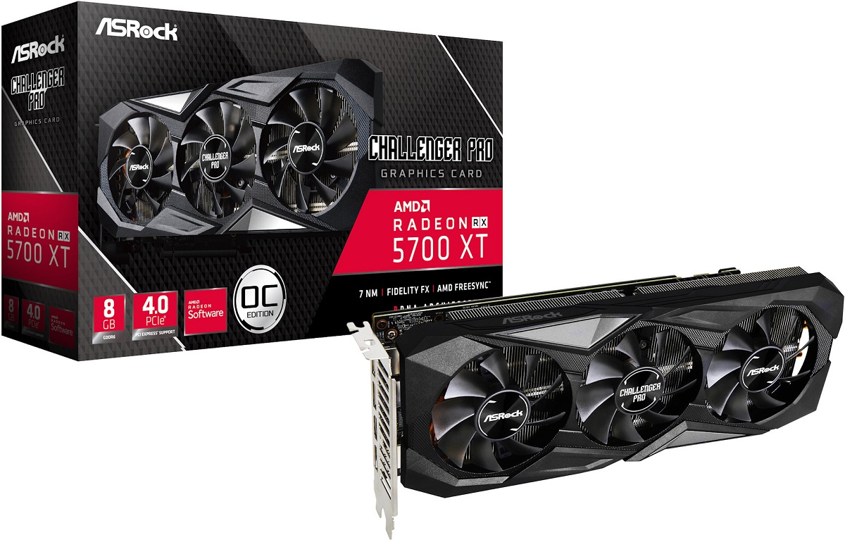 ASRock Radeon RX 5700 XT Challenger Pro OC располагает воздушным кулером на базе трёх ~80-мм вентиляторов и двухсекционного алюминиевого радиатора с несколькими теплотрубками. Обратную сторону карты прикрывает металлическая пластина, а на торце присутствуют два 8-контактных разъёма дополнительного питания.