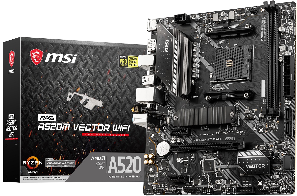 Micro-Star International одной из первых представила материнские платы с набором логики AMD A520. В эту волну анонсов входят четыре модели: MAG A520M Vector WiFi, A520M Pro, A520M-A Pro и A520M Pro-C Dash. Все новинки готовы принять на борт 7-нм процессоры AMD Zen 2, включая гибридные чипы Ryzen 4000G, и, как отмечает вендор, допускают разгон ОЗУ вплоть до 4600 МГц.