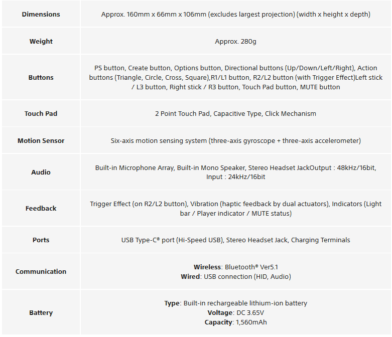 Спецификации контроллера DualSense