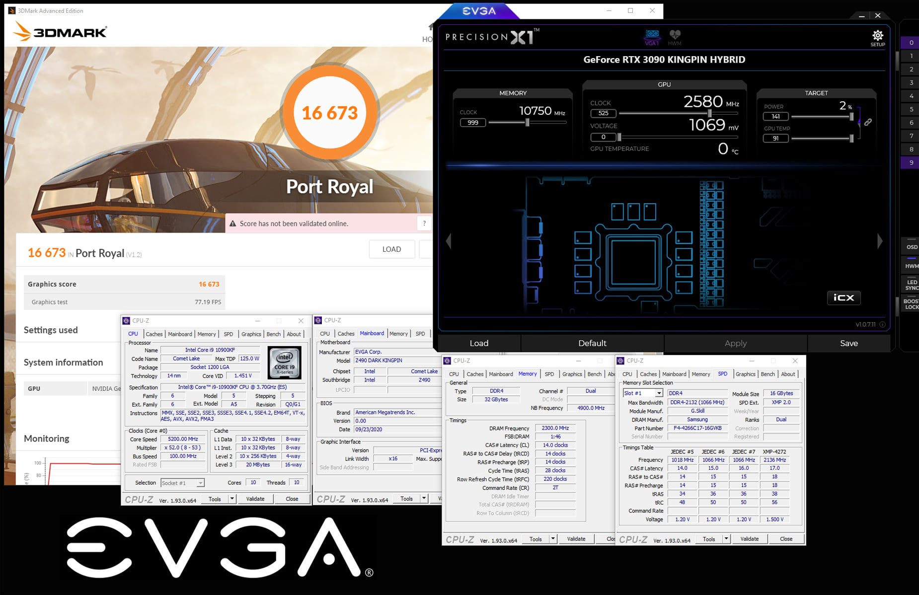 Известный оверклокер Винс «k|ngp|n» Люсидо отличился в экстремальном разгоне видеокарты GeForce RTX 3090 на 8-нм чипе Nvidia GA102. Главным результатом бенч-сессии Винса стал абсолютный рекорд в бенчмарке 3DMark Port Royal — 16 673 «попугая».