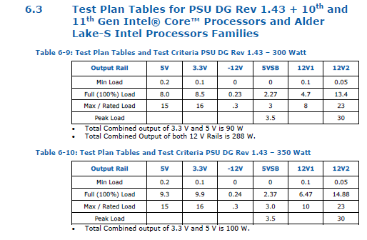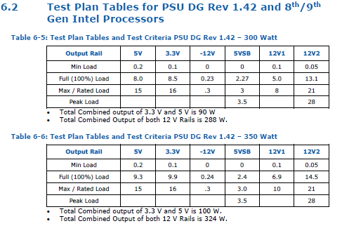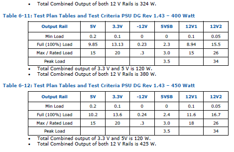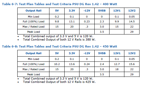 Планы тестирования БП являются технической документацией для производителей материнских плат и блоков питания, с учетом которых создаются продукты для новых поколений процессоров. Планы разделены на группы по 300, 350, 400 и 450 Вт (характеристики блоков питания с более высокой мощностью должны соответствовать группе 450 Вт).