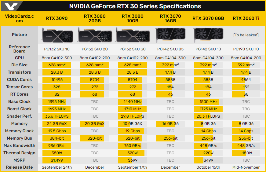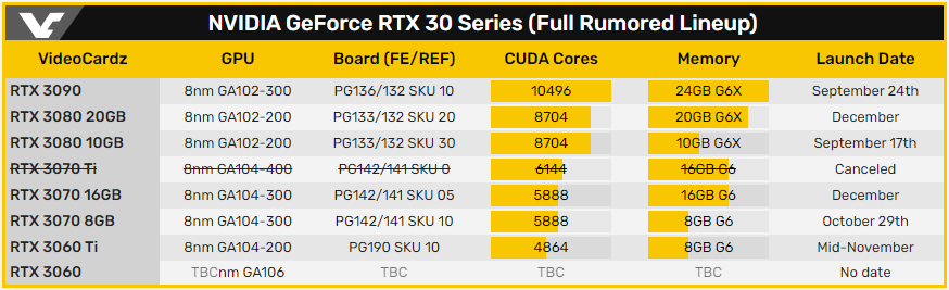 Кроме того, перенос релиза GeForce RTX 3070 8GB привёл к задержке анонса GeForce RTX 3060 Ti. Теперь дебют этой видеокарты запланирован на середину ноября.