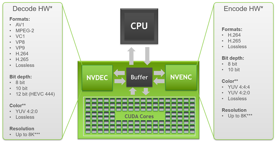 Ознакомиться с характеристиками кодеров и декодеров GPU Nvidia можно в отдельных таблицах.