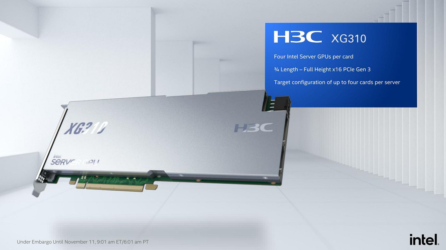 Серверный 3D-ускоритель Intel H3C XG310 уже поставляется клиентам. Известно, что Intel работает над развёртыванием новой платформы с несколькими партнерами по облачным играм, включая Gamestream, Tencent Games и Ubitus.