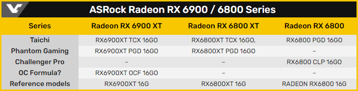 Согласно утечке, тайванцы предложат видеокарты Radeon RX 6900 XT в исполнении Taichi, Phantom Gaming и OC Formula. Последняя модель станет флагманским решением вендора и будет рассчитана на любителей оверклокинга. К слову, мы уже рассказывали о Radeon RX 6800 XT Taichi, которая поступит в продажу до конца этого месяца.