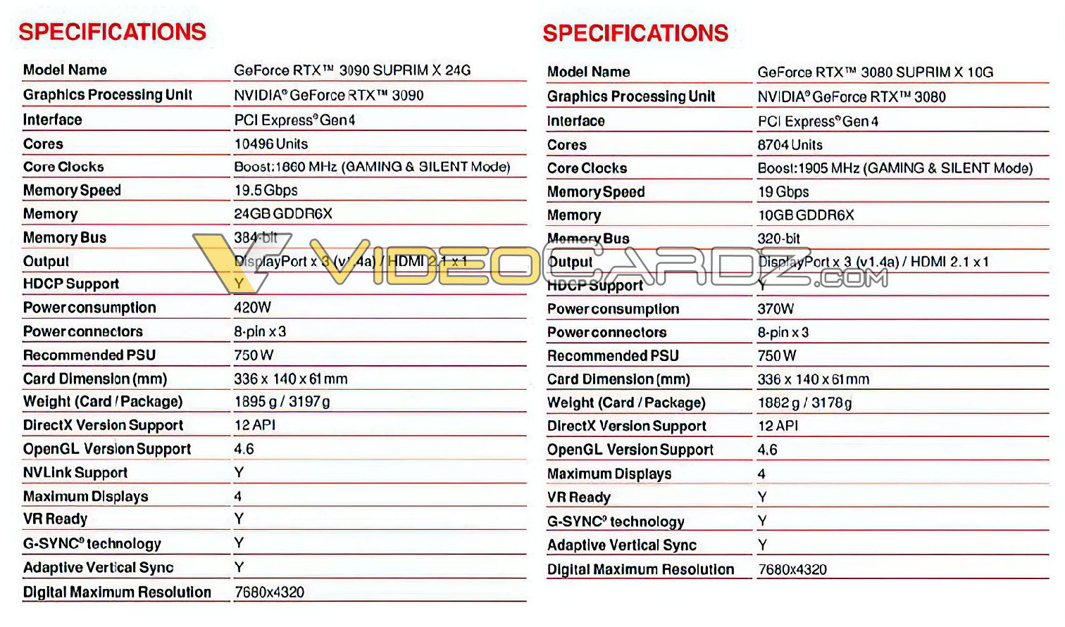 Относительно рекомендованной цены видеокарт MSI GeForce RTX 3080/3090 Suprim X никакой информации не поступало.