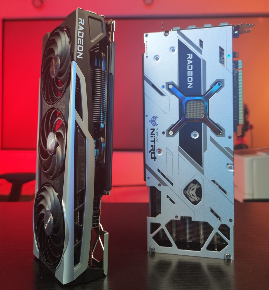 Видеокарты Radeon RX 6800 (XT) в исполнении Sapphire Nitro+ оснащены массивным кулером на основе радиатора с пятью 6-мм теплотрубками и трёх вентиляторов. Тыльная сторона прикрыта усилительной пластиной из алюминия с вырезами в задней части. Адаптеры занимают пространство трёх слотов расширения и характеризуются длиной 310 мм.