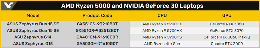 Между тем, в новом ASUS ROG Zephyrus G14 будет использован 35-ваттный процессор Ryzen 9 5900HS и 3D-ускоритель GeForce RTX 3060 Max-Q.